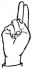 На ћирилици написано БУДИМИР КРУЉ састоји се из 11 слова [?]. Исписано ћириличном једноручном азбуком за глувонеме: